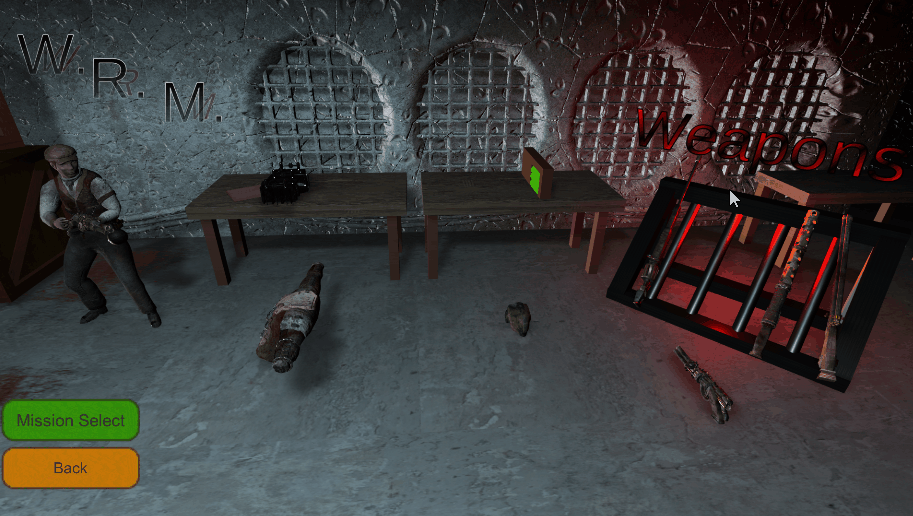 Main Menu: Over haul of style and design. Updated fonts, equipment select is separated by type and a new option to play as a female character model. Mission select is separated by sets of missions rather than a random list of missions that spawn.
